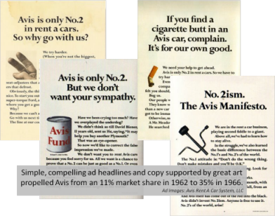In fact AdAge lists this business-saving Avis campaign as #10 in their top 100 advertising campaigns of all time.